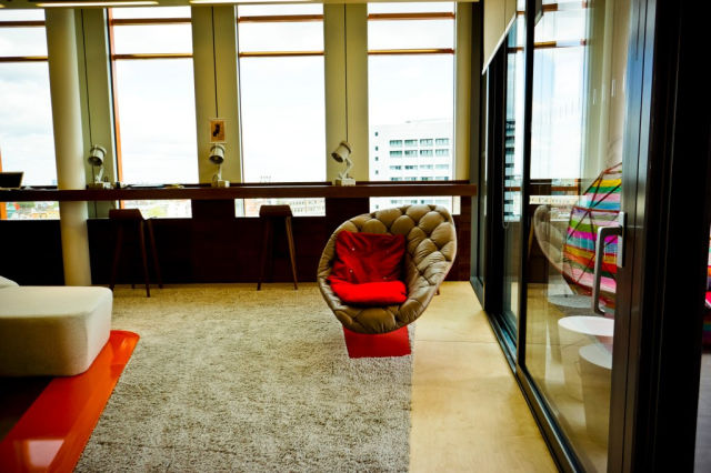 未来的なだけでなく、古き良き70年代の雰囲気も融合させたと言う、ロンドン支部のオフィスをご覧ください。