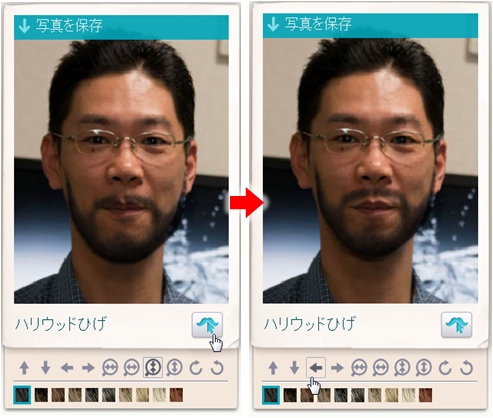 中には微妙にひげがずれているものもありますが、ヒゲボタンを押すと詳細な微調整もできるようです。位置や大きさ、角度に加え、ひげの色まで調整できるとはなかなか細かい…!