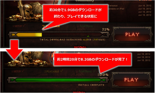 そこで、実際にどれだけの違いが出るのか、光回線の相手とWiMAXを通して、先ほどインストールしたDiabloIIIでオンラインプレイをしてみました。