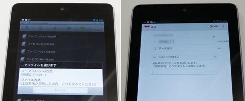 外出先で家にその日使うファイルを忘れてしまい、しまった…!なんて場合でもすぐに自宅からコピーできる上、AndroidのGmailアプリならファイルの形式を問わず自由にメールに添付することもできるので、急にデータを要求されたときでもNexus7ひとつで対応できるのが便利。これも地味なことですが、iOSでは簡単にはできない事なんですよ。