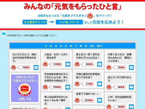 この曲は、キリン プラス-アイの特設サイト「100万人でつくろう元気のうた」で現在公開されています。かなりいい曲なので、まずはぜひ一度聴いてみてください。