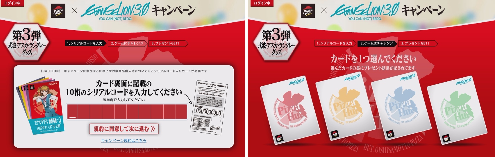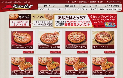 このキャンペーンでは、冬のハットプレミアムシリーズメニュー「オマール海老ソースの本ズワイ蟹」「こだわりミートのイベリコ&四元豚」などを注文すると、「ヱヴァンゲリヲン新劇場版:Q」とコラボしたピザハットオリジナルグッズなどが当たるというもの。詳細はこちら。