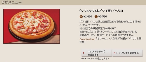 そこで今回は、プレミアムメニューが両方同時に味わえるハーフ&ハーフを注文。現在期間限定で300円オフのキャンペーン中で、さらにネット注文で5%オフとなり、Mサイズの会計は2,071円でした。オンラインだとクレジットカードで支払えるのも便利でいいですね。