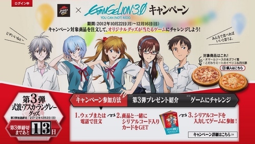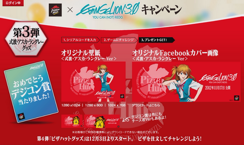 そのヱヴァンゲリヲンとピザハットがコラボし、12月16日まで オリジナルコラボグッズが当たるキャンペーン を実施しているので、早速編集部で注文してみました。