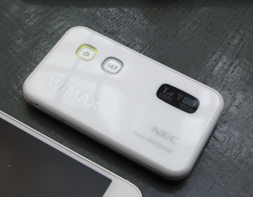 WiMAXモバイルルーター、WM3800R。速度制限無しの下り最大40Mbpsで、Wi-Fi対応のタブレット、パソコン、スマートフォン、ゲーム機など、大体なんでもネットに繋いでくれます。