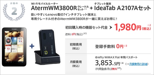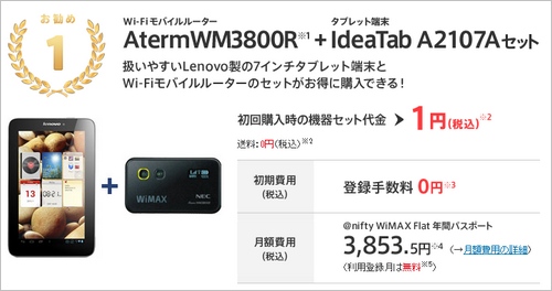 タブレット・WiMAX端末が合わせて1円〜、月額3,853.5円から