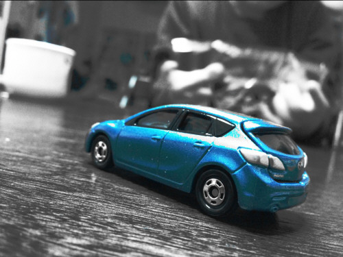 早速らばQでも投稿しようと思ったのですが、マツダ車オーナーの友達は出張中で連絡がつかず。他に編集部にあるマツダ車と言えば…えーと、ミニカーでも大丈夫…かな…?