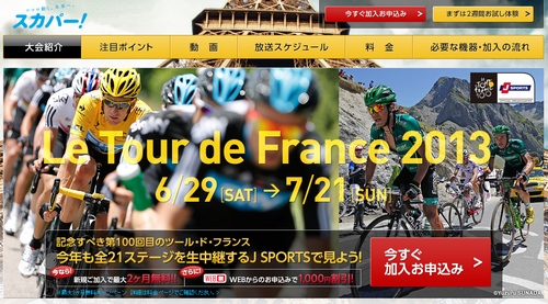 今年のツール・ド・フランスは、6月29日から開催、日本ではスカパー!のJ SPORTSチャンネルで、全21ステージを放送。 またパソコンやスマホ、タブレットでも楽しめる、スカパー!オンデマンドでもLIVE配信されますよ!