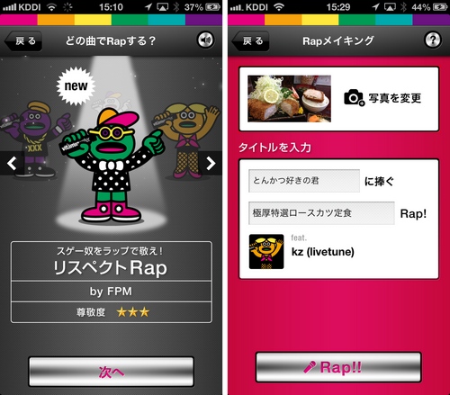 iPhone向けアプリケーション無料ランキング1位(2013/4/13時点)になった、写真とコメントを入れるだけで簡単にRapが作れるアプリ。