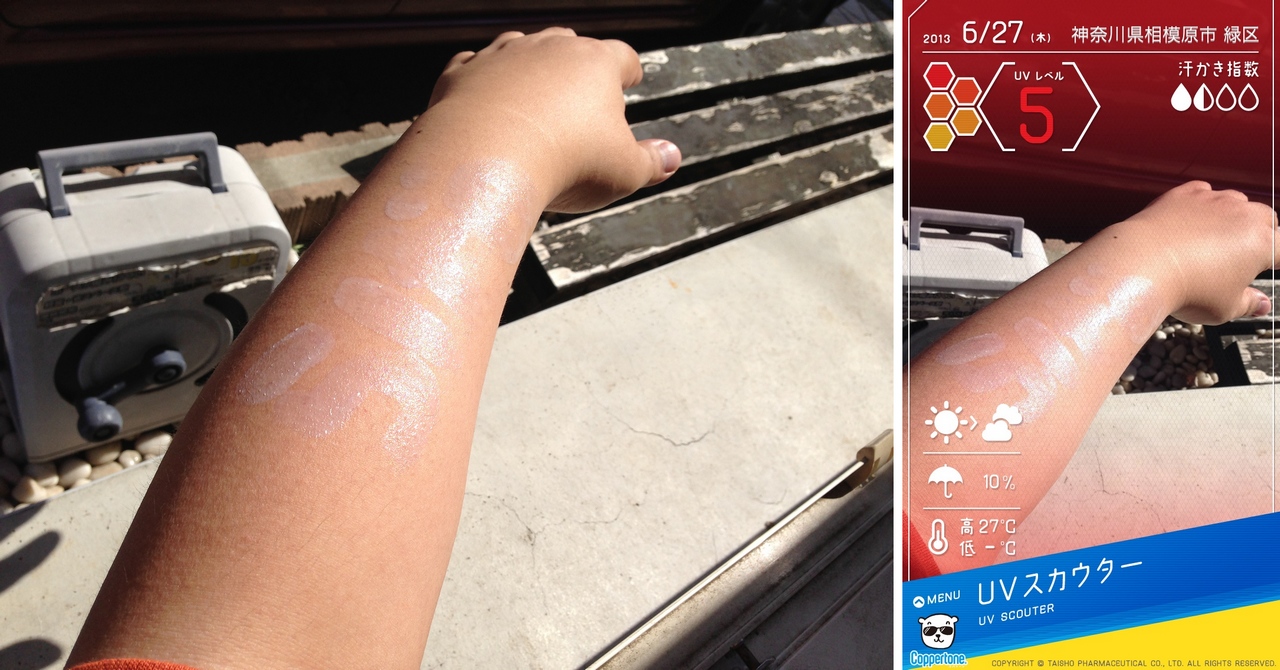 そこで紫外線レベルが見えるアプリ「 UVコパトーン 」にて、UVレベルが最も高い時に無防備な肌を太陽光に晒すとどうなるのか…実際に試してみました。