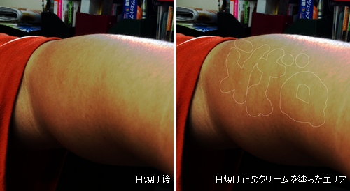 また写真ではわかりにくいのですが、UVクリームを塗った部分もうっすらと浮かび上がるくらい肌の色に差が…たった1時間で…!?