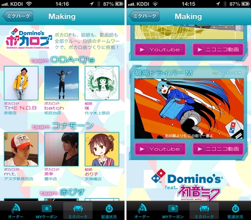 ちなみに「ボカロPプロジェクト」によると、アプリ内で使用されているボカロ曲はドミノ・ピザのスタッフが作っていたりするそうですが、いやはやなんという取り組みよう…!