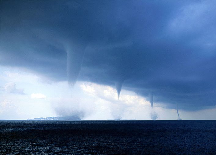 竜巻に出遭うなんてことは早々なく、遠目にでも見えるとその自然の驚異を感じると思うのですが、その竜巻が連続して起こっている写真が話題になっていました。