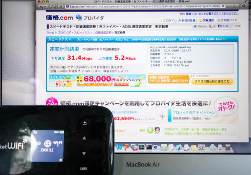 またらばQスタッフで、山手線の内側を車で走りながらどのくらいの速度が出るかを試してみたところ、価格.comスピードテストでは
