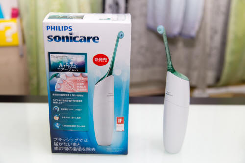 最後に試したのはフィリップス・エアーフロス。これはブラシや糸を使わず、水と空気の圧力だけで歯間の汚れを吹き飛ばします。
