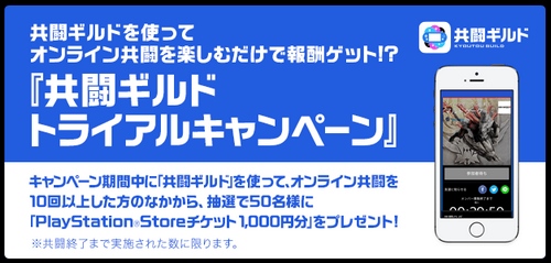 なお6月15日までに、共闘ギルドを使ってオンライン共闘を10回以上すると、抽選でPlayStationStoreチケット1000円分が50名に当たるキャンペーンも実施しているので、試してみるならお早めに!