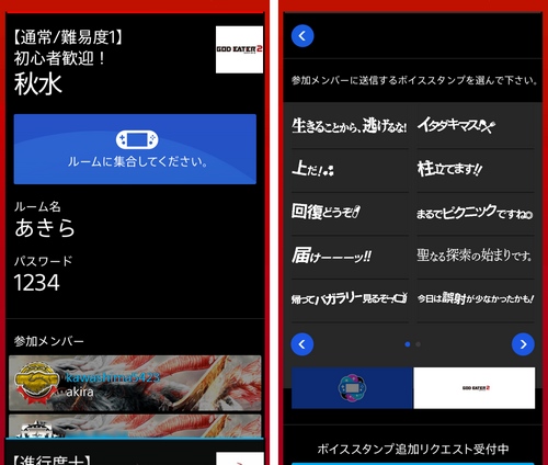 参加者が揃ったら、PS Vitaで指示されたルームに入室、そしてボイススタンプでご挨拶。