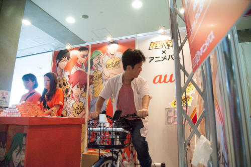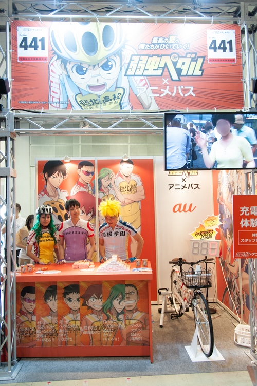最近auはコミケに異様に力を入れているようですが、今回は弱虫ペダルとコラボし、長時間の滞在に欠かせないスマホ充電ブースを設置していました。