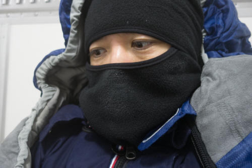 防寒装備を整えると、まるでこれから富士山でも登るかのような雰囲気に。