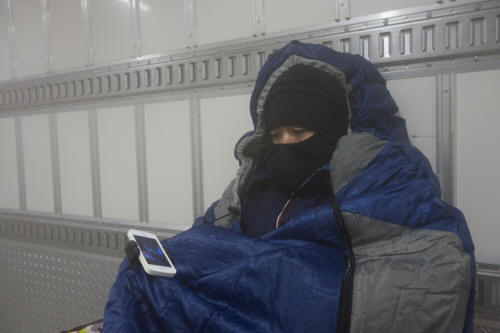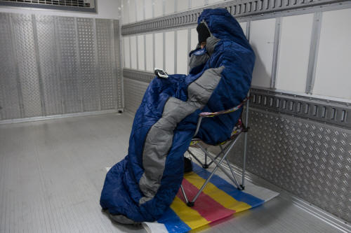 凍傷になられても困るので、こんな時のためにと用意していた、冬用のシュラフを装備。