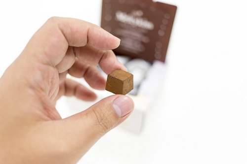 この雪のような口どけの秘密は、25度を超えると急速に溶け始め、35度では完全に溶けてしまうカカオの成分、ココアバターの割合を工夫して融点を低くしているためなのだとか。
