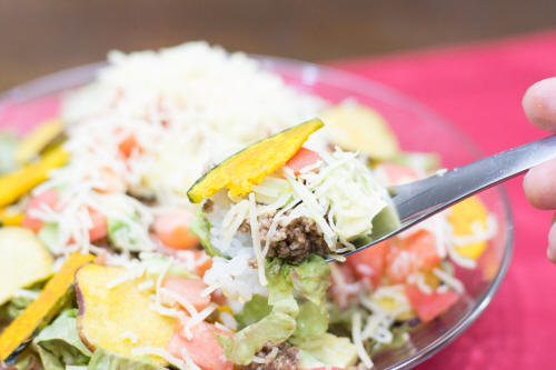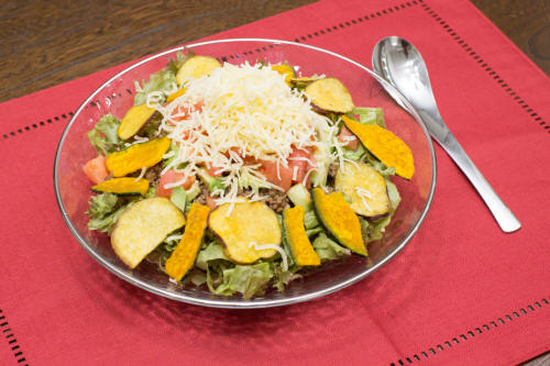 続いてはレシピによってはトルティーヤチップスを散らすタコライス。