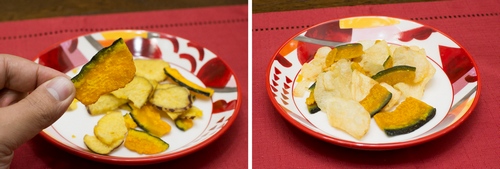 野菜にしては…とかいう話じゃなく、馴染みのあるポテチにも匹敵するほどのおいしさ。野菜ごとにサクサク、バリバリといった違う触感が楽しめるのもまたいいんですよ。