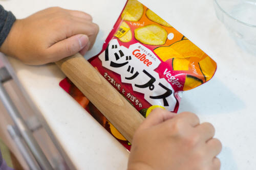 ちなみにベジップスを細かくするには、麺棒などでつぶすと簡単。また粗く砕くなら、袋のまま手で割るといい感じに仕上がりますよ。