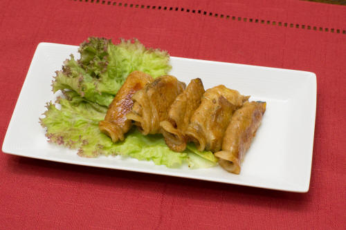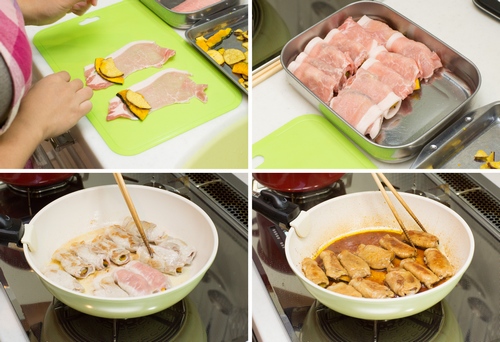 そしてちょっと手間をかけて、豚ロースでベジップスを巻き、照り焼きにしてみました。