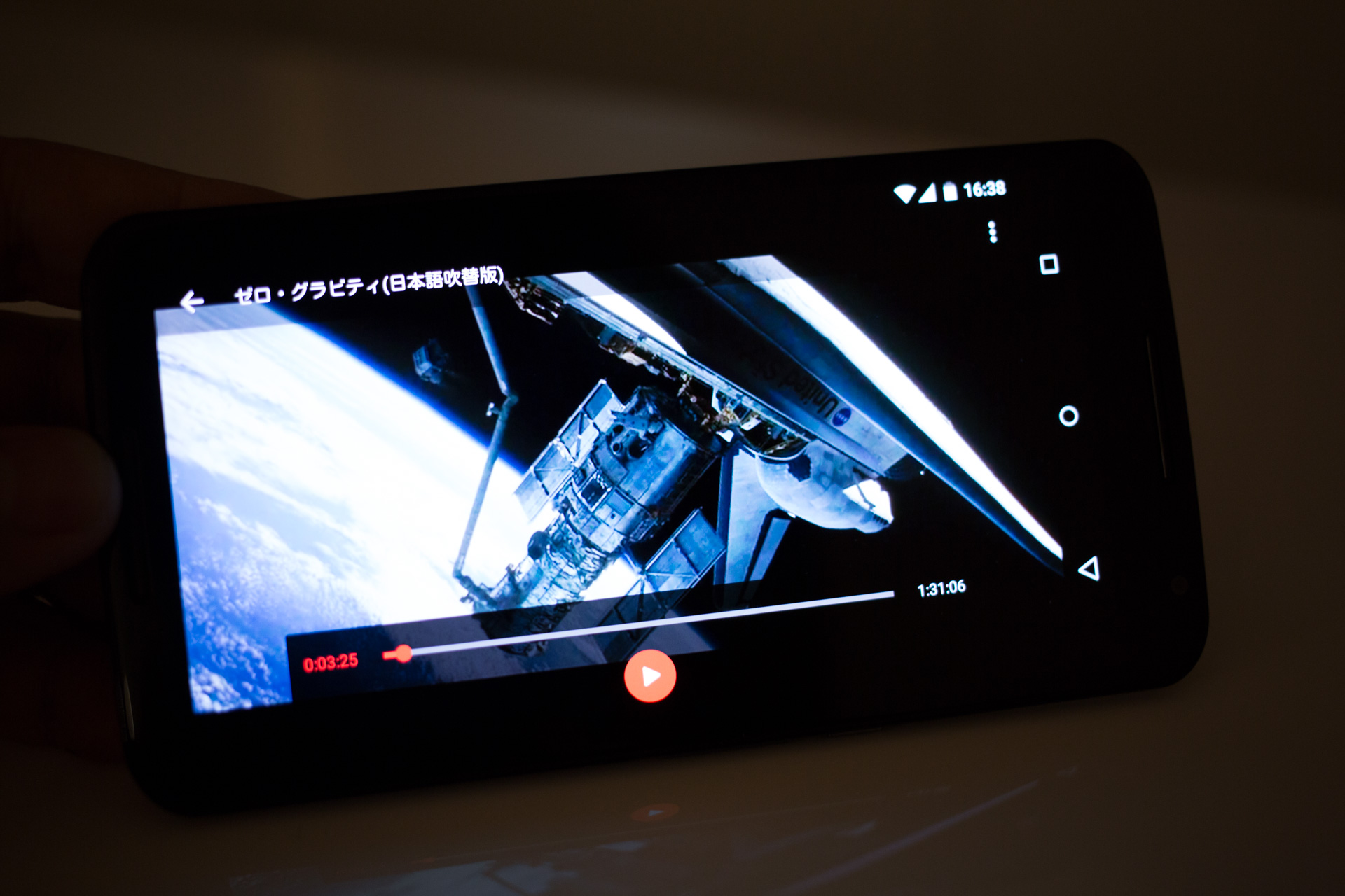 ディスプレイは1440 x 2560ピクセルの超高解像度の、本物の黒を表現できる6インチ有機ELディスプレイを搭載。試しに映画を暗がりで観てみると…宇宙空間の黒が、まさに漆黒!