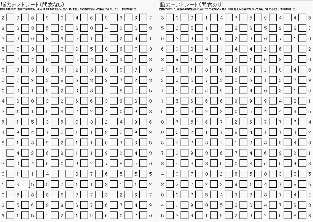 そこで実際に夜遅くまで起きて夜食を摂り、計算テストでどれほど頭の回転が変わるのか、実際に試してみました。