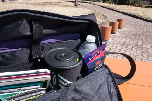 ちなみにカバンにしまうとこんな感じになりました。コンパクト。