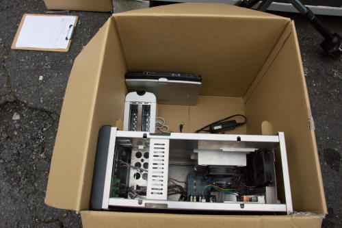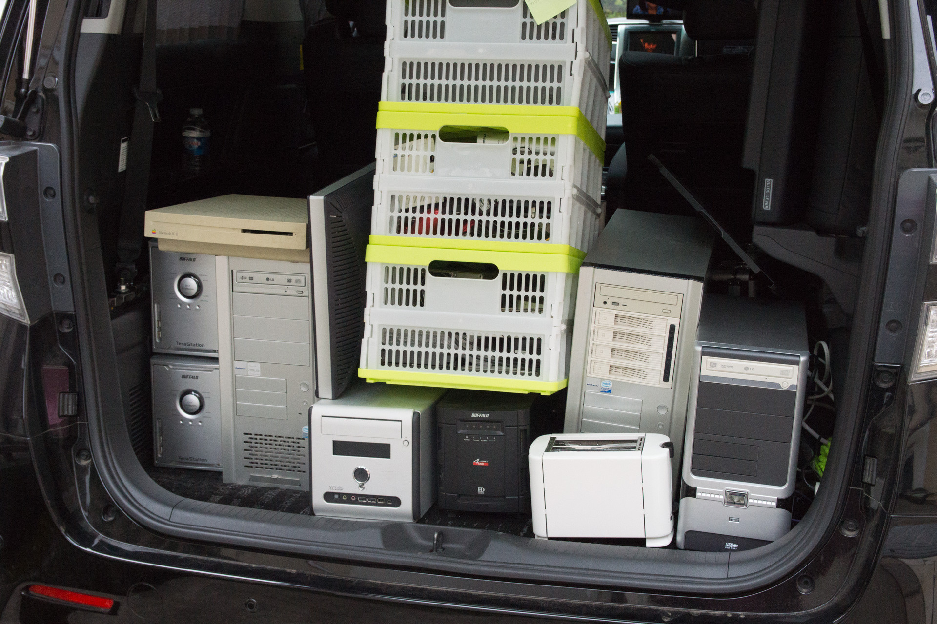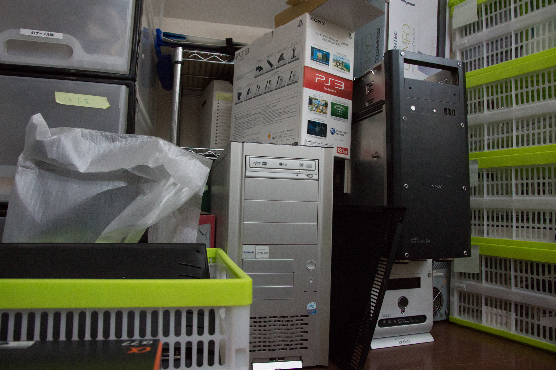 動くPentium4時代のノート1台に、パーツを抜かれてケースのあちこちが欠品しているどうしようもないタワーPC、トースター…おお、入る!