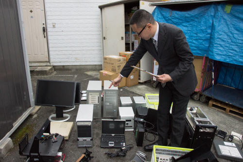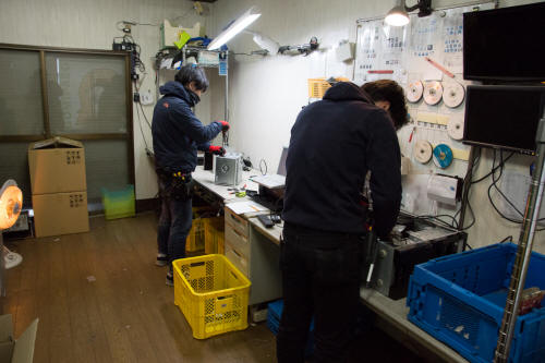 送られて来たパソコンは、まず奥の工房に持ち込まれ、分解。中のHDDを取り出します。