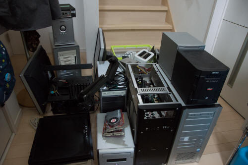 かつては自作PCにハマり、8台マルチディスプレイなんて無茶をしたりもしましたが、なにしろ古くなったパソコンや周辺機器は溜まる一方。