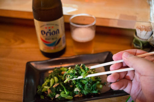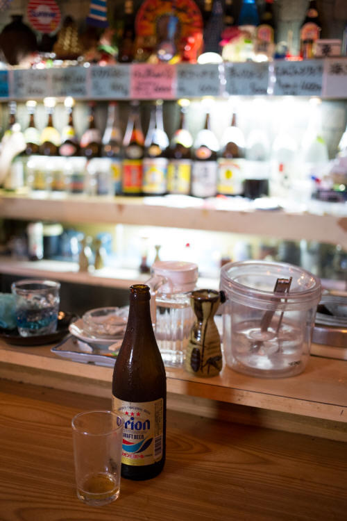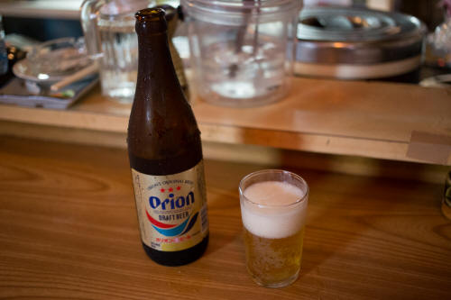 写真を撮ることもすっかり忘れ、まずはビールを一杯。沖縄といえばやっぱりオリオンビール。うんまい。