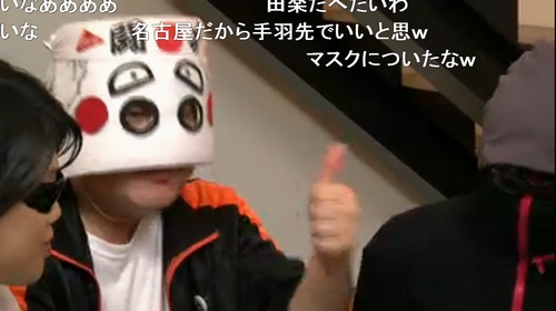 あろまほっとさんのお面についたそばめしに、すかさず視聴者から入る総ツッコミ。
