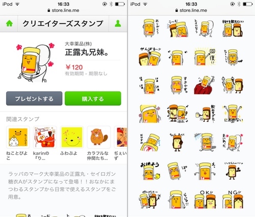 この『正露丸兄妹。』は、ラッパのマークでおなじみ大幸薬品の正露丸の、公式LINEスタンプ。一般投票を経て、LINEスタンプで初デビューとなりました。