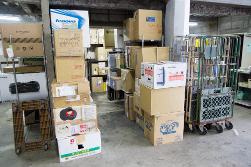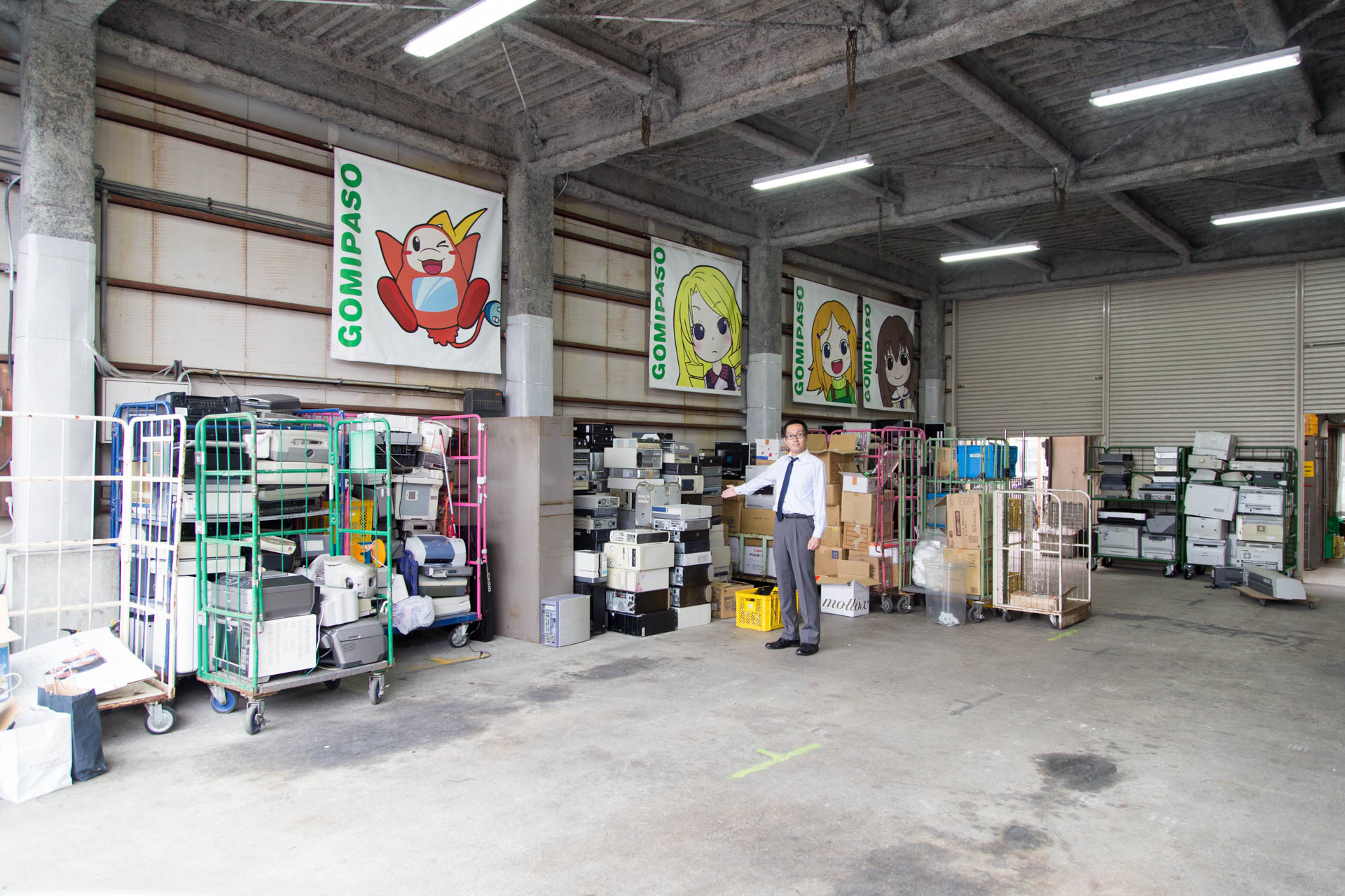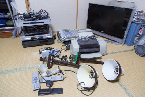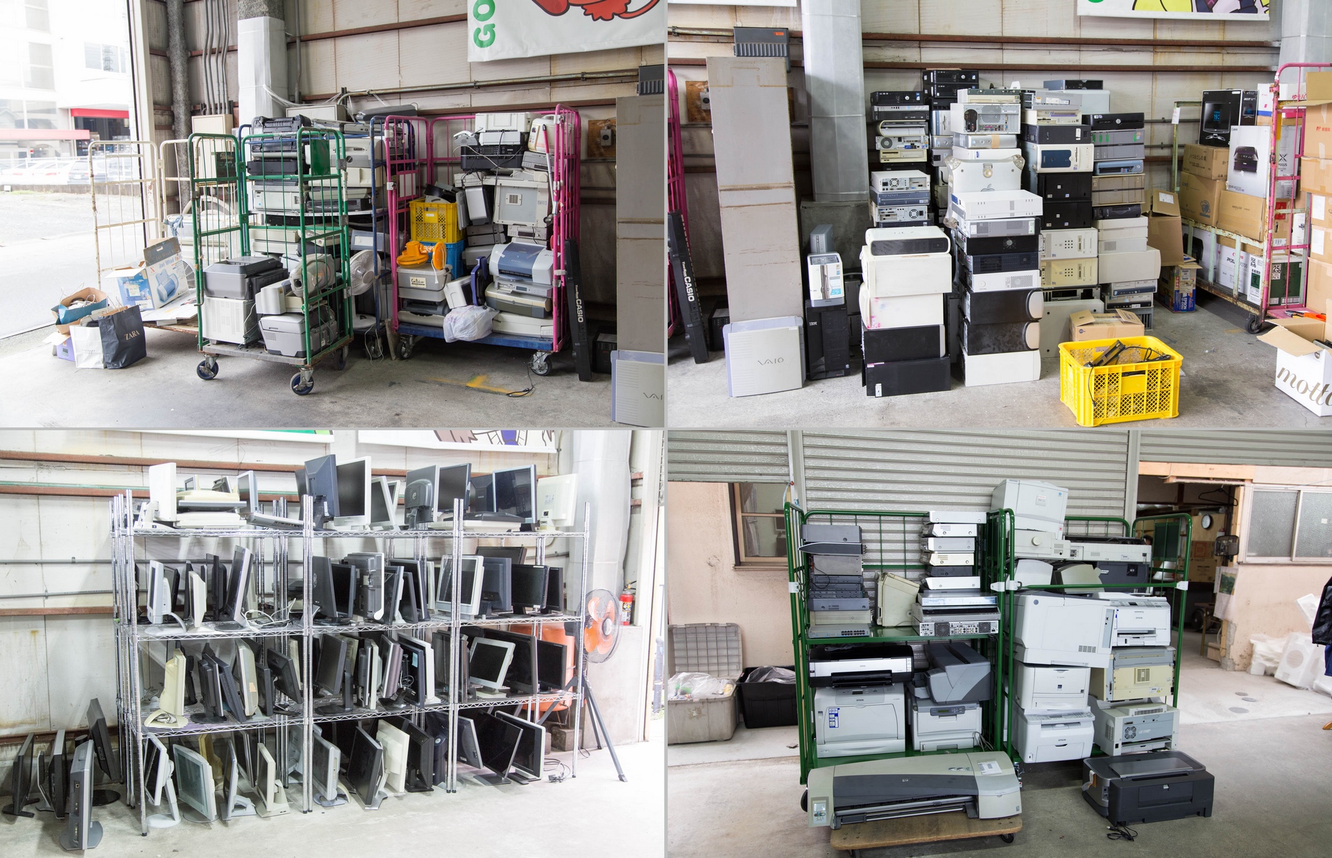 家電、プリンター、エアコン、そして文字通り山のようなデスクトップパソコンに、おびただしい量のディスプレイ。業務用機器もドッサリ。