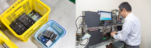 プライバシーや機密情報が詰まっているパソコンのハードディスクは、1台1台丁寧に取り外して、全て時間のかかる物理フォーマットで完全に消去。