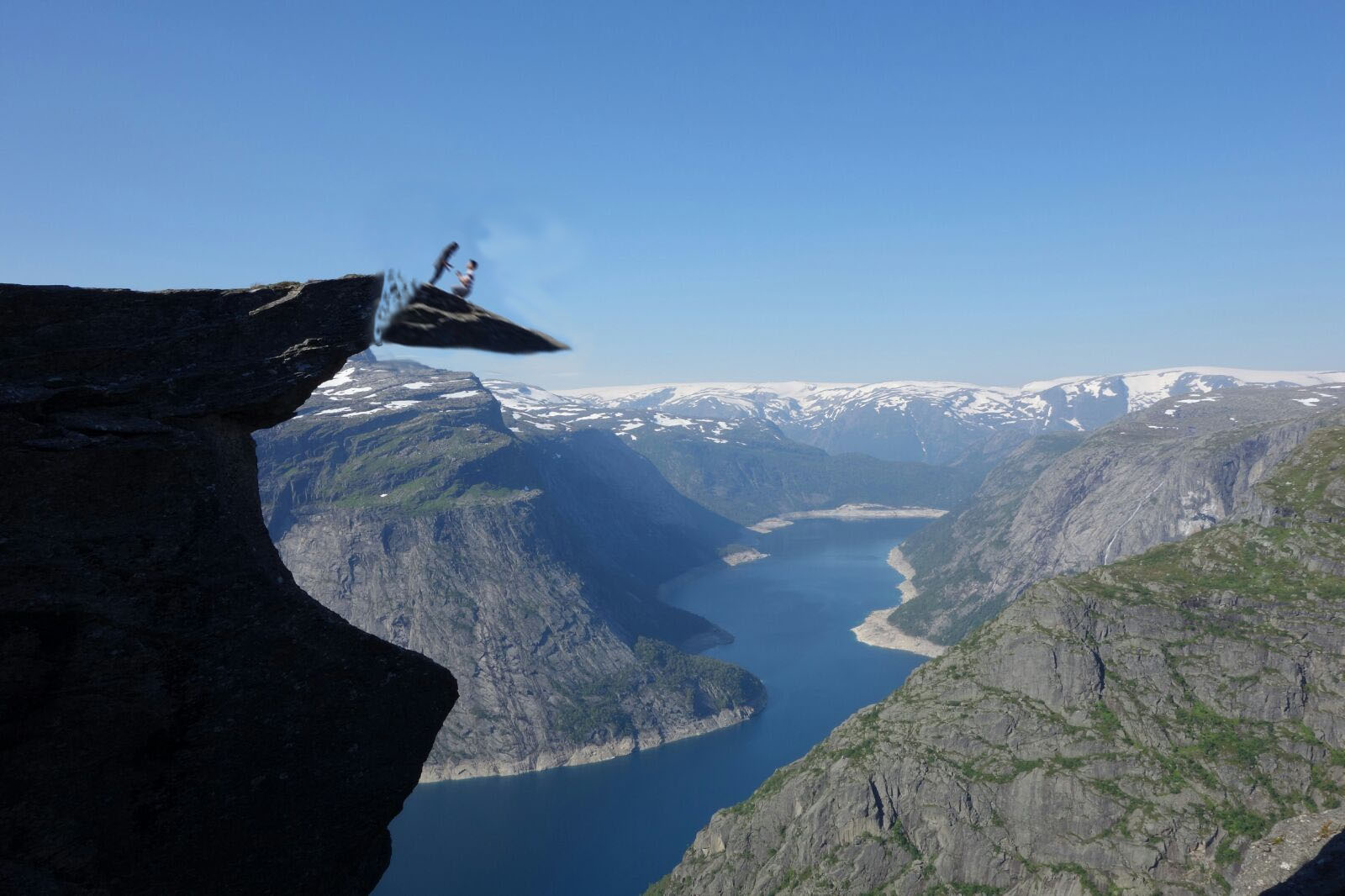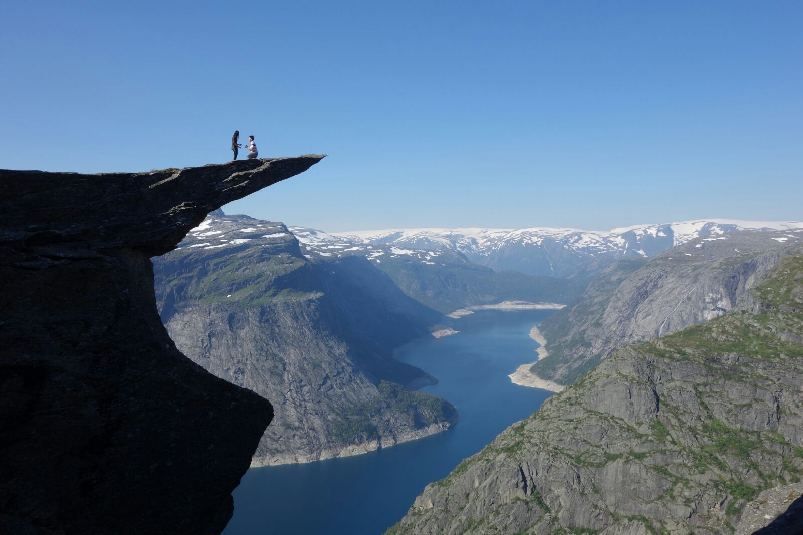 とある男性が、絶景に囲まれたノルウェーでプロポーズしたところ、その写真を撮ってくれた旅行者にお礼を述べていました。