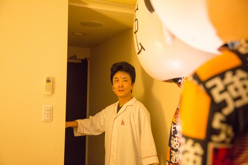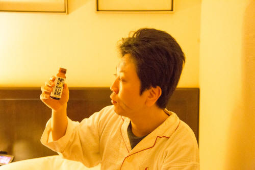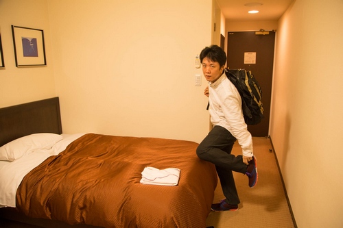 何も知らずにやって来た編集長、久々のホテル泊にゴキゲンなようです。