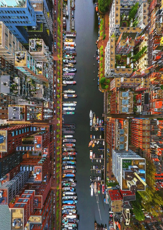 「アムステルダムの街を真上から見下ろすと…こんな写真になる」