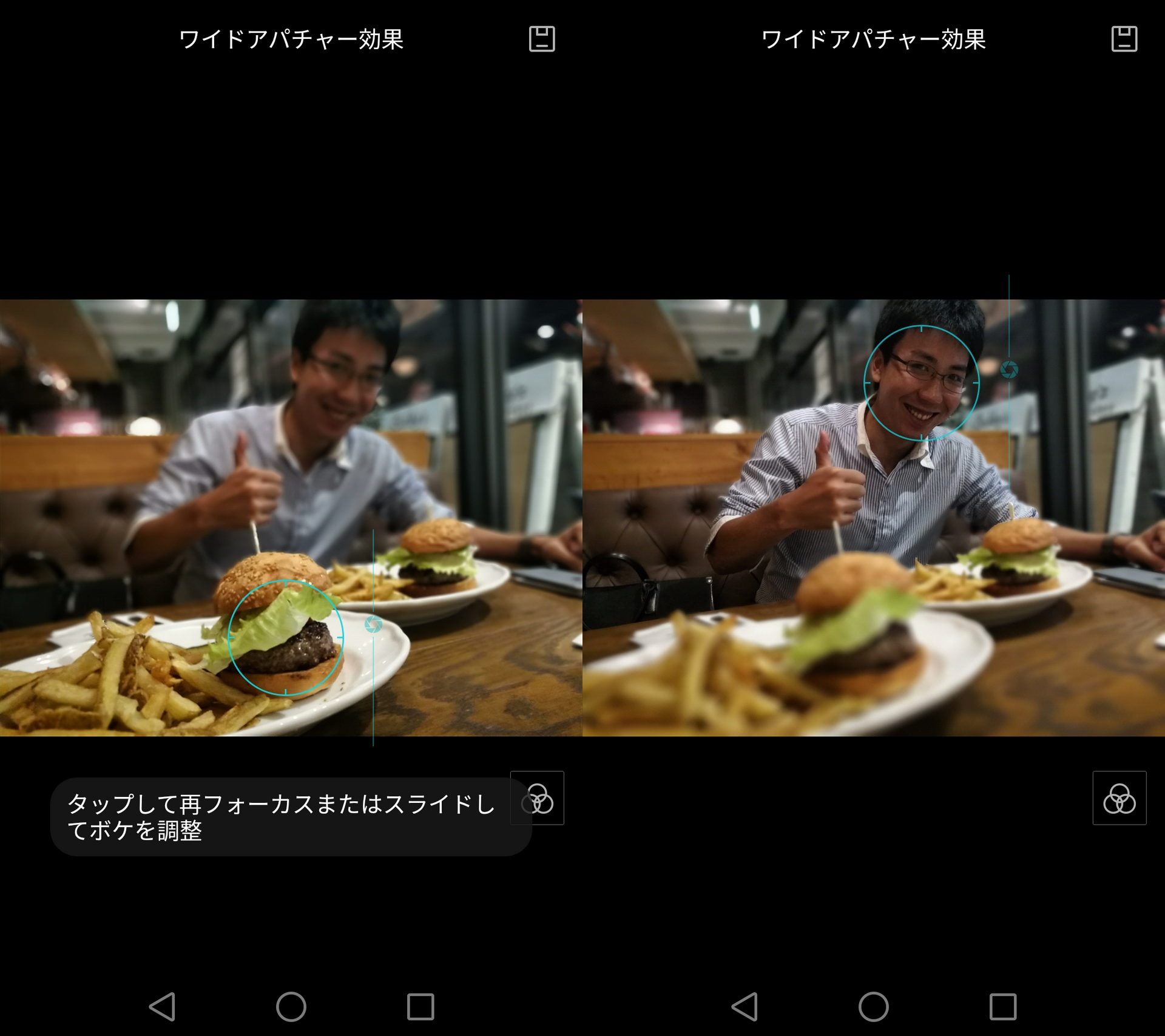 そしてダブルレンズカメラのもう一つの恩恵が、『ワイドアパーチャ撮影』による美しいボケ味。左は全くボケのない、いかにもスマホっぽい写真ですが、右の写真は、まるでキレイに背景がボケて、より美味しそう…!