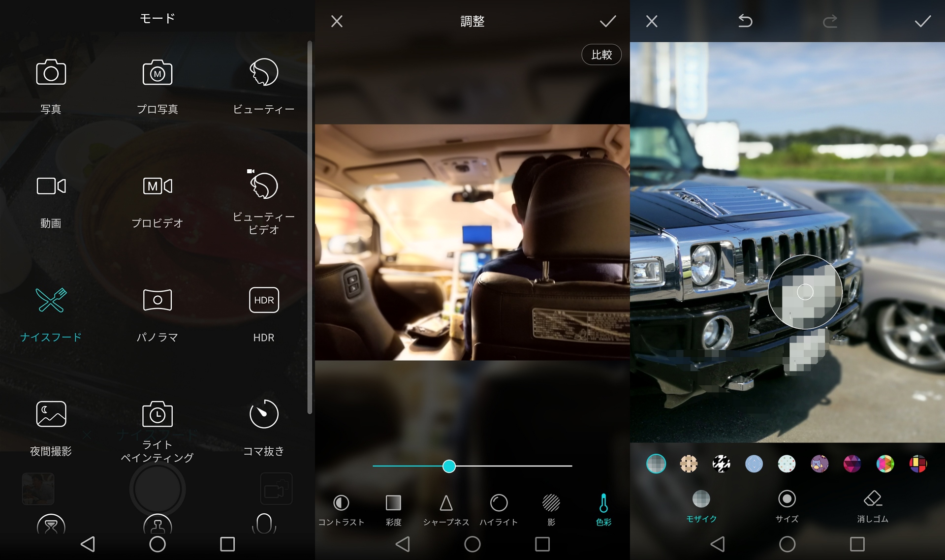 また他にもマニュアル撮影など多彩なモードや、プロでも使えるレベルの現像・調整、さらに落書きやモザイク加工までも標準で搭載。