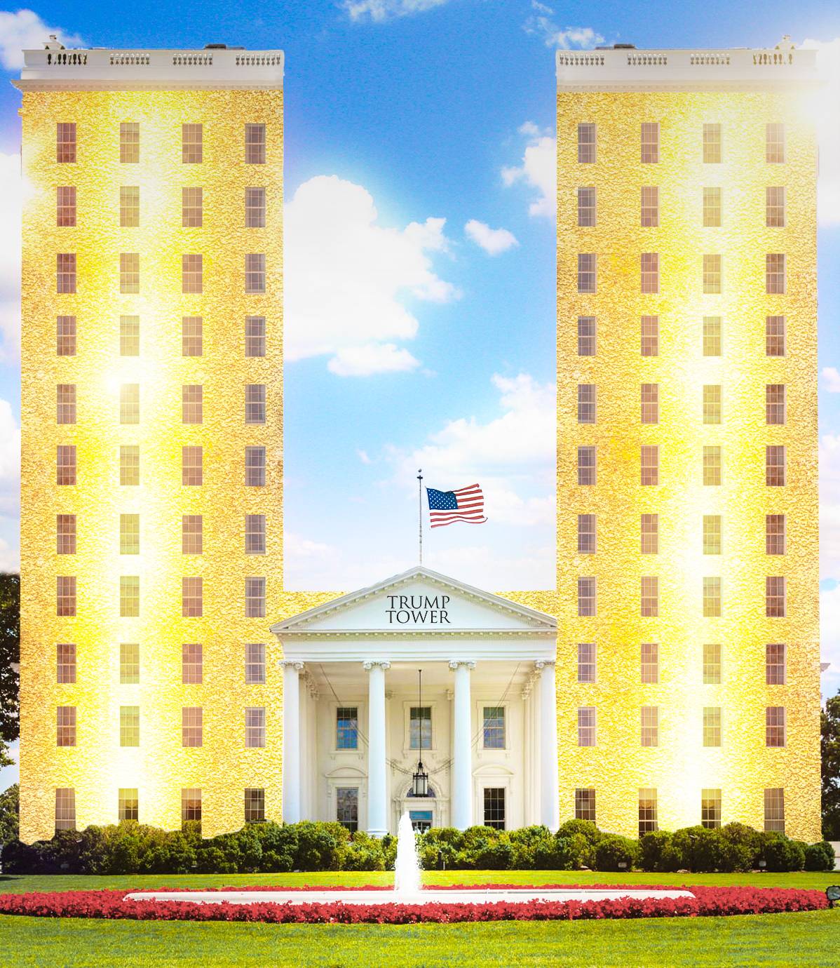 ホワイトハウスならぬトランプハウスに変貌した、フォトショップバトルをご覧ください。
