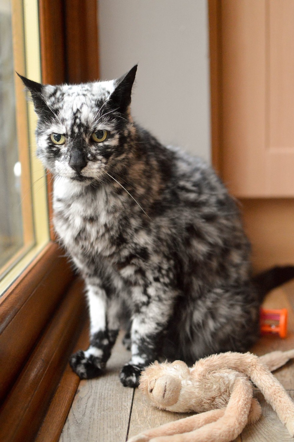19歳のオス猫スクラッピーは生まれたときは普通の黒猫でした。