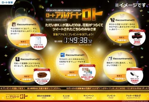 花粉に悩むツイートを発信して、K.I.の支援物資を待ってみよう!