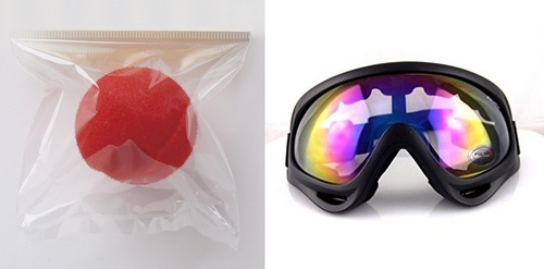 鼻と目のガードに、つけ鼻とビッグゴーグル…