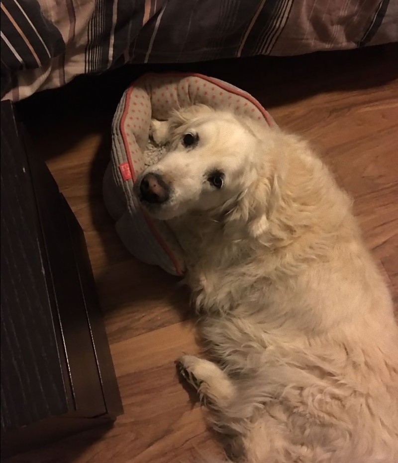 しかし届いたベッドはXSサイズ。ゴールデン・レトリバーには小さすぎたのです。